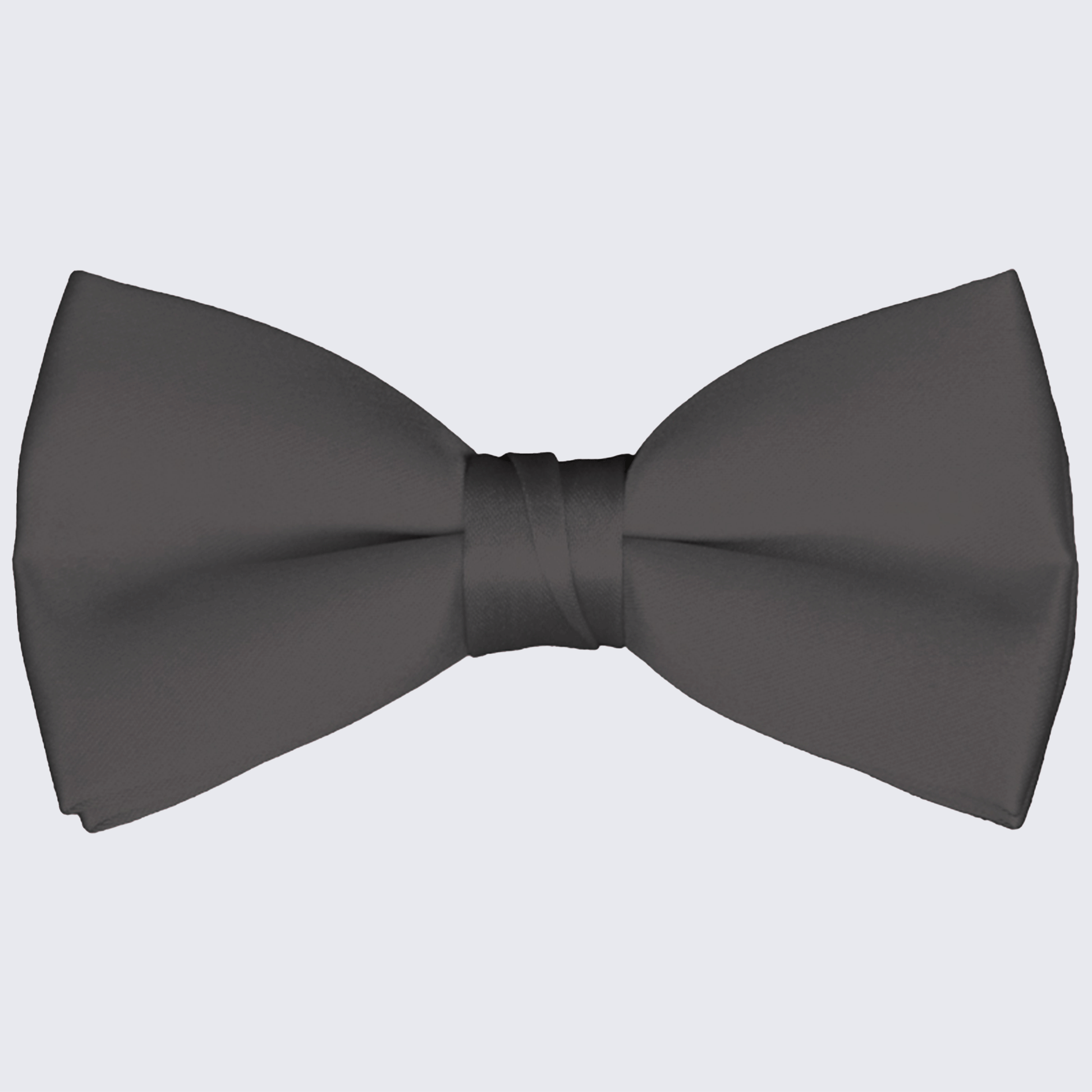 Boy's satin charcoal pre-tied bow tie. This solid colored satin bow tie is made of 100% polyester. Adjustable strap that wraps around the neck that can be adjusted down to a  size 10 1/2" - 17 1/2 neck.  This bow tie is perfect for weddings, proms, formal events, or those who are just looking to spice up their look.