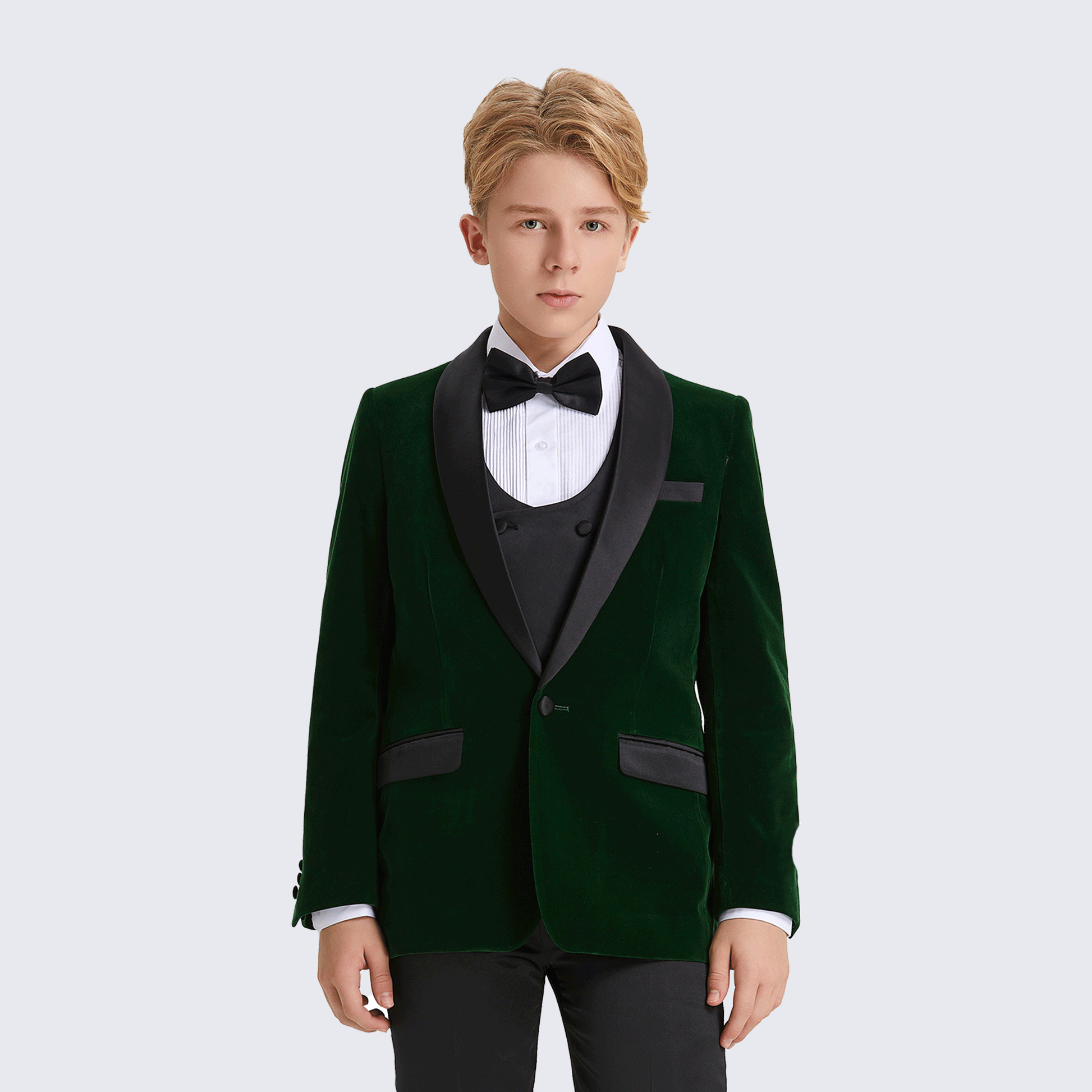 Boy's Green Tuxedo Velvet 5-Piece Set for Kids Teen Children - Wedding